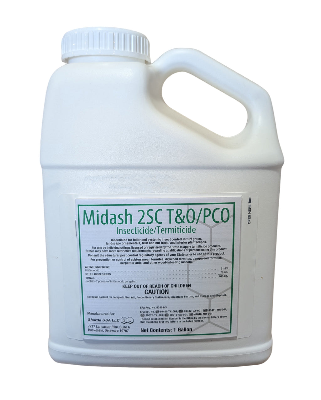 Midash 2SC T&O/PCO Insecticide/Termiticide is a systemic, non-repellent solution designed for broad use in turf, ornamentals, and structural pest management. With the trusted active ingredient imidacloprid, Midash 2SC provides reliable protection by moving through the plant system from the roots to the foliage. It offers flexible application as both a termiticide and insecticide, delivering long-lasting barriers against termites and outstanding control of ants and turf pests. Suitable for use in residential and commercial landscapes, as well as interior plantscapes, Midash 2SC gives professionals a powerful tool to protect plants, turf, and structures from damaging insect populations.