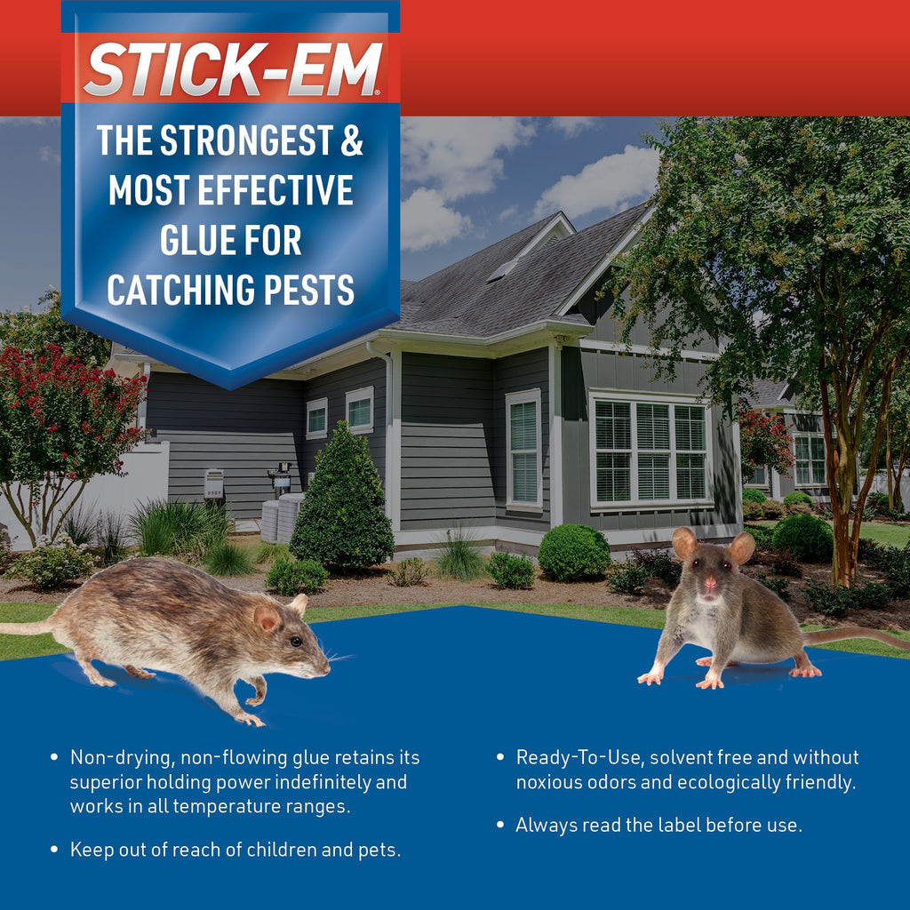 The Stick-Em Mighty Glue Board delivers reliable pest control in all environments—even in cold weather where other glue boards fail. Designed with a powerful adhesive that stays tacky in extreme temperatures, this heavy-duty trap captures rats, mice, roaches, spiders, and even snakes. Ideal for use in homes, apartments, garages, warehouses, and other sensitive areas where poison-free pest control is essential.